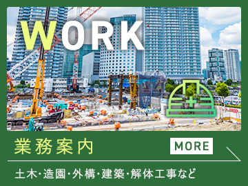 土木工事や外構工事、建築工事などに携わっていただきます。経験の有無は問いません。未経験者も大歓迎です。